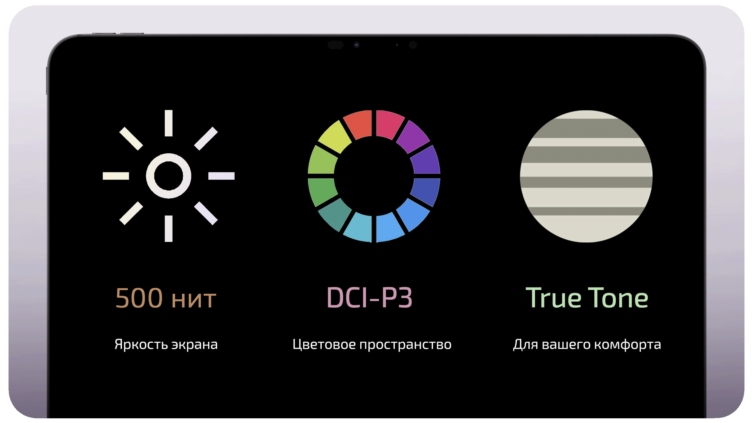 Планшет iPad Air 11" оснащён полностью ламинированным дисплеем Liquid Retina. Экран поддерживает широкий цветовой охват P3 и технологию True Tone, которая подстраивает цветовую температуру под освещение вокруг. Высокая яркость и антибликовое покрытие позволяют комфортно работать с планшетом даже днём, а высокая плотность пикселей делает изображение чётким и детализированным, что важно для просмотра видео высокой чёткости, работы с графикой и приятно при чтении. Максимальная яркость экрана 11-дюймового iPad Air M4 составляет 500 нит.